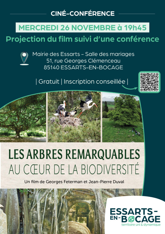 Projection du film " Les arbres remarquables au cœur de la biodiversité" suivi d'un débat-conférence en présence de Stéphane Barbier et Jean-Eude Bégard, co-correspondants de l’association A.R.B.R.E.S. en Vendée.