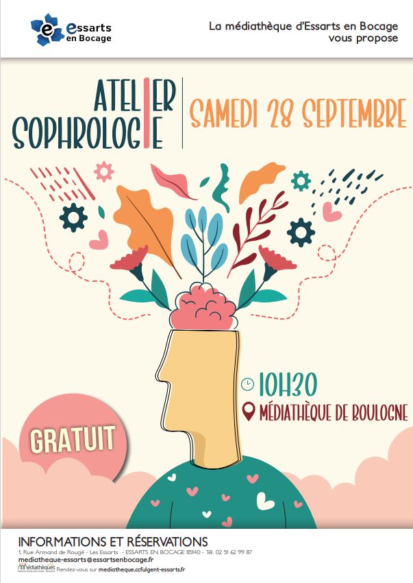 La médiathèque de Boulogne vous propose un atelier sophrologie avec le sophrologue Thierry Loussouarn. GRATUIT sur réservation au 02 51 62 99 87 ou par mail mediatheque-essarts@essartsenbocage.fr.