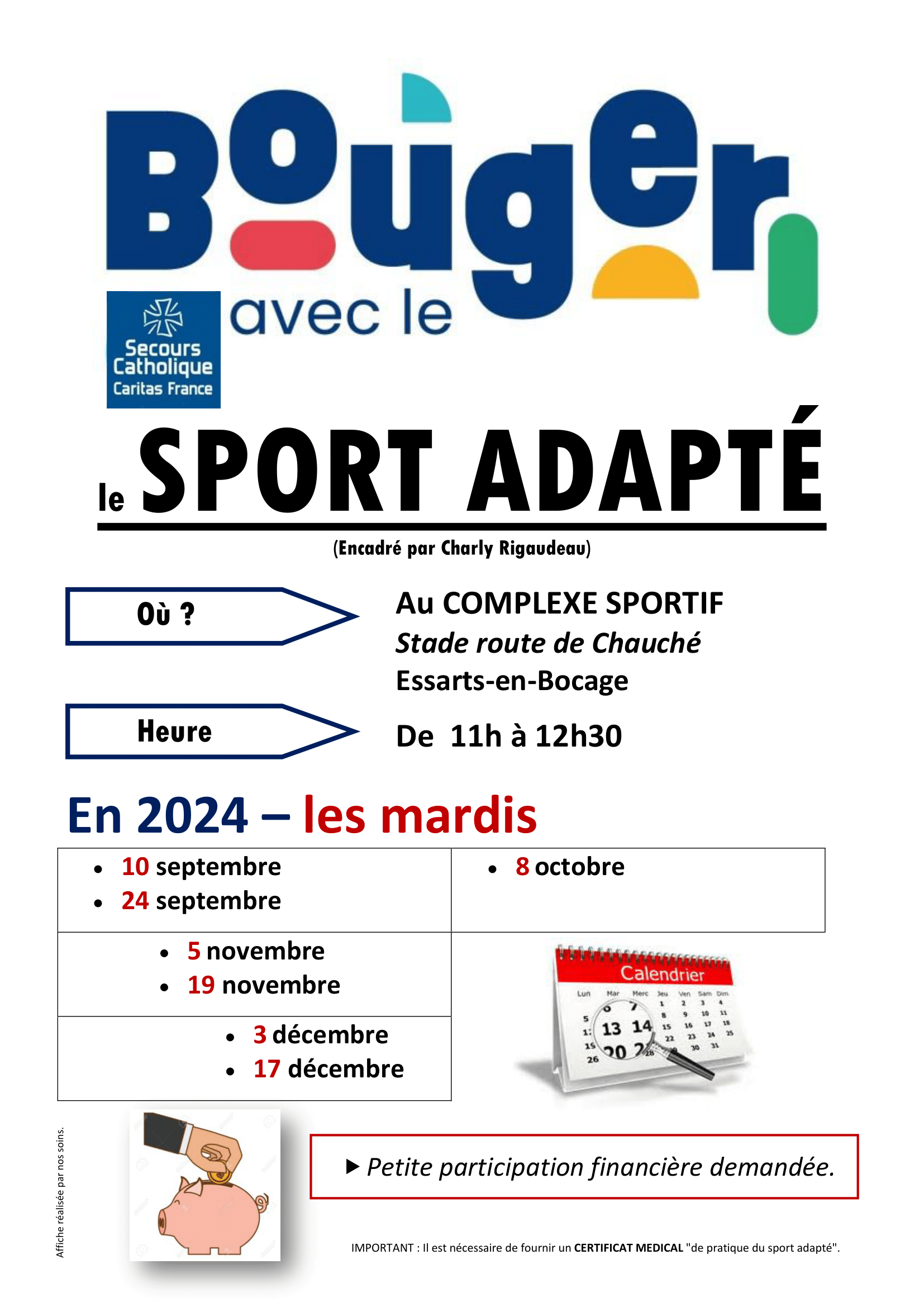 Participez à « Bouger avec le sport adapté » le 17 décembre de 11h00 à 12h30 au complexe sportif des Essarts. Une activité inclusive par le Secours Catholique !