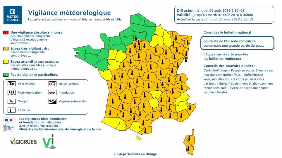 ⚠️ Le Département de la Vendée est en vigilance météorologique JAUNE ⚠️ pour fortes chaleurs, nous vous demandons donc de porter une attention aux informations ci-dessous et d’adopter les bons réflexes.